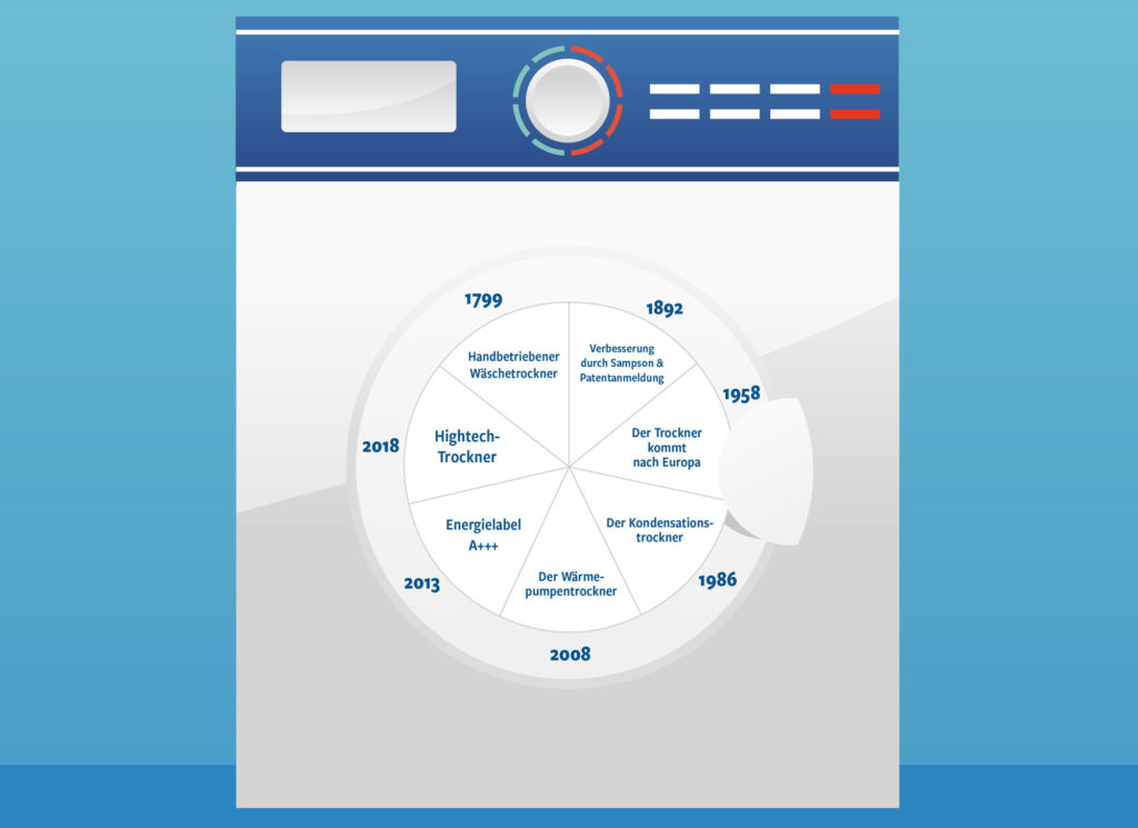 - 2018: Wäschetrockner sind komfortable und sparsame Hightech-Geräte geworden, diemittlerweile auf einem äußerst leistbaren Preisniveau vertrieben werden.
